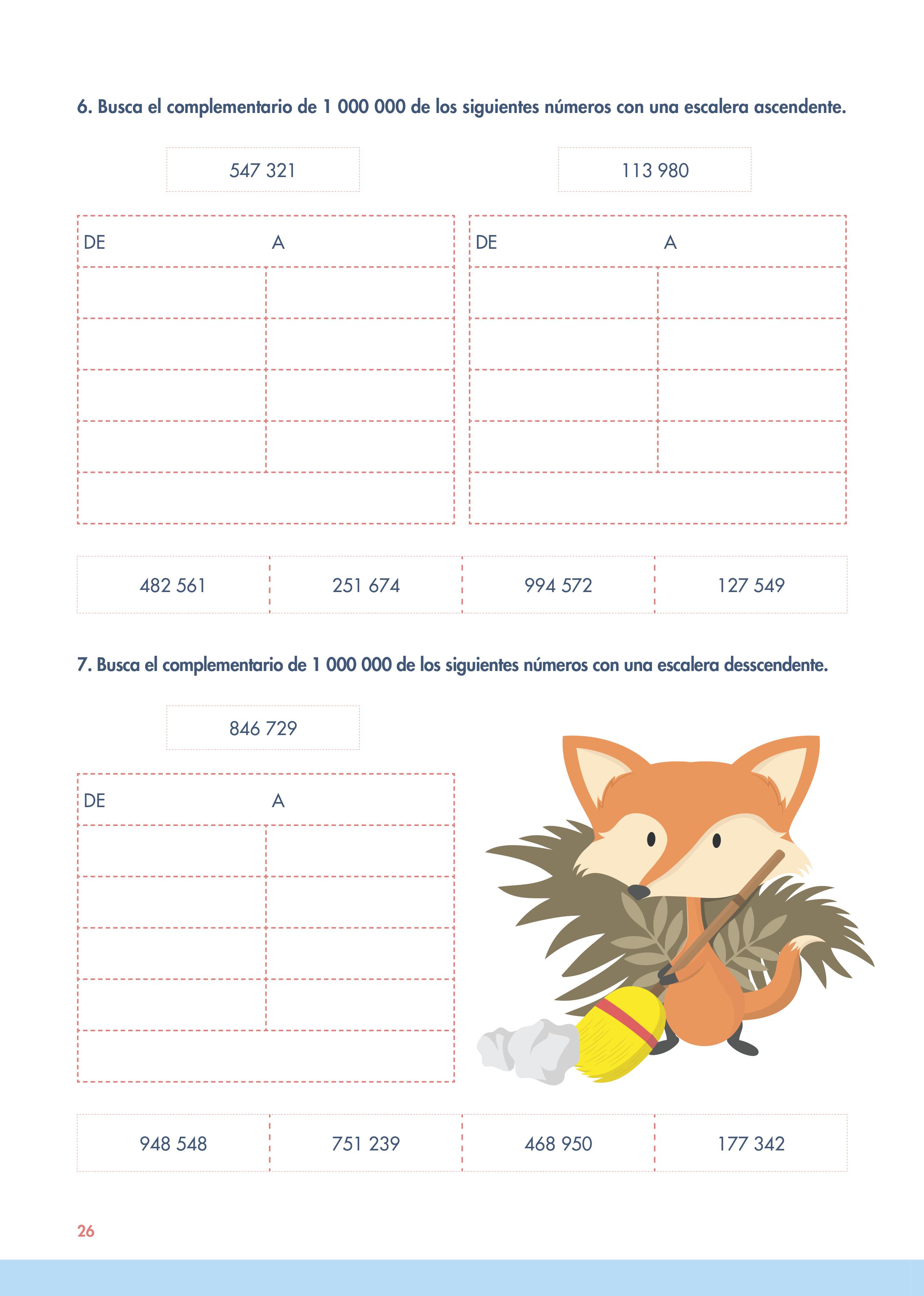 En esta página vamos a trabajar los complementarios del 1 000 000 utilizando tanto la escalera ascendente como la descendente.
