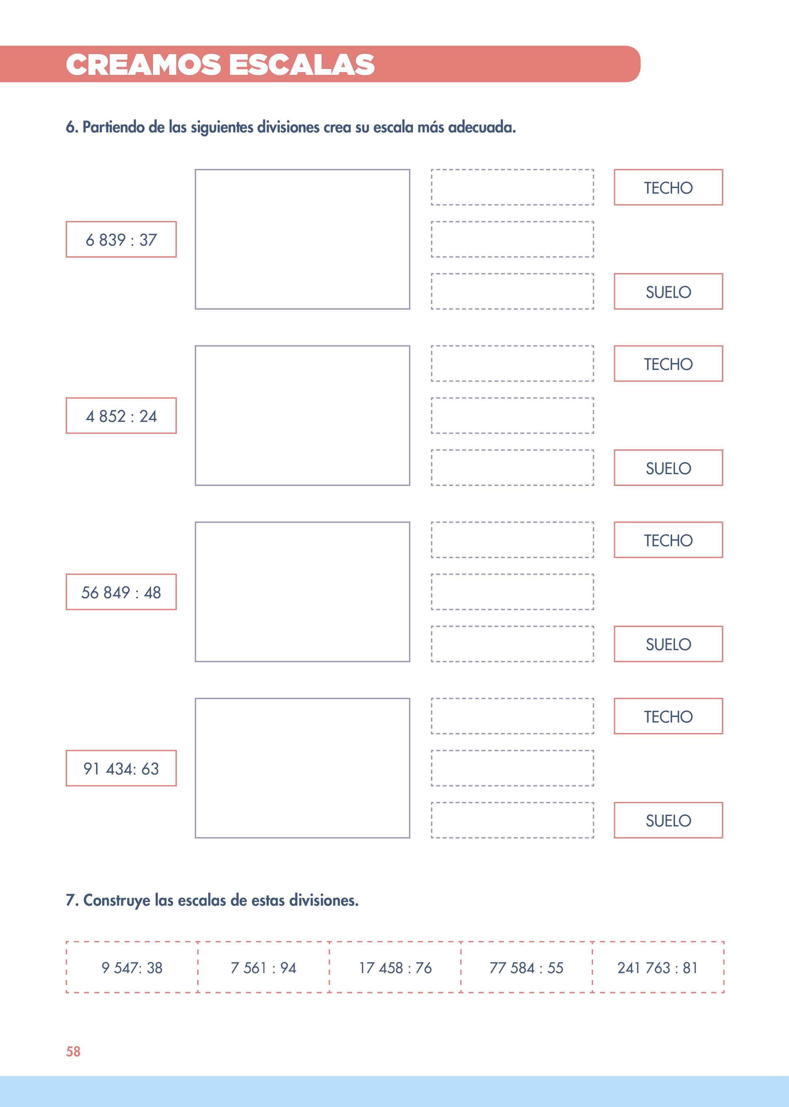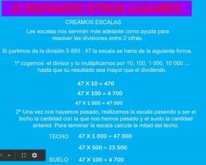 La actividad consiste en utilizando la escala, estimar el cociente más cercano a los diferentes dividendos que aparecen. Para ello es posible que tengamos que utilizar varias partes de la escala.