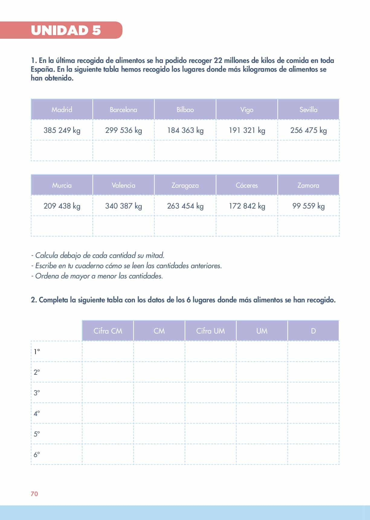 En el primer ejercicio trabajamos el cálculo de la mitad, el orden de cantidades y la escritura de números.