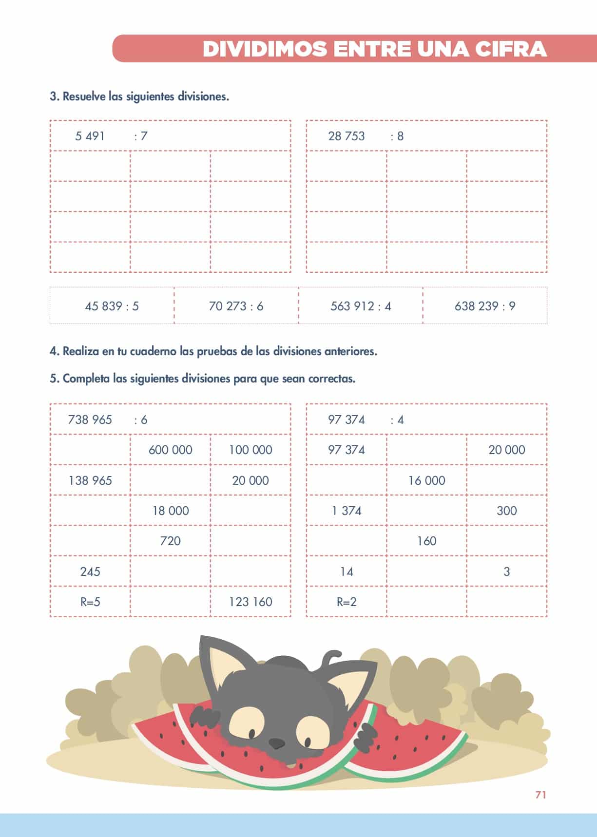 Para comenzar un ejercicio como el de la página anterior, en el que tendrán que completar un división incompleta ayudándose de la escala.