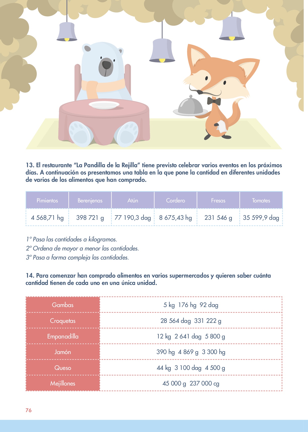 Comenzamos con la masa. Primero un ejercicio de pasar de una unidad a otra. Después ordenas los pesos y pasar a compleja.