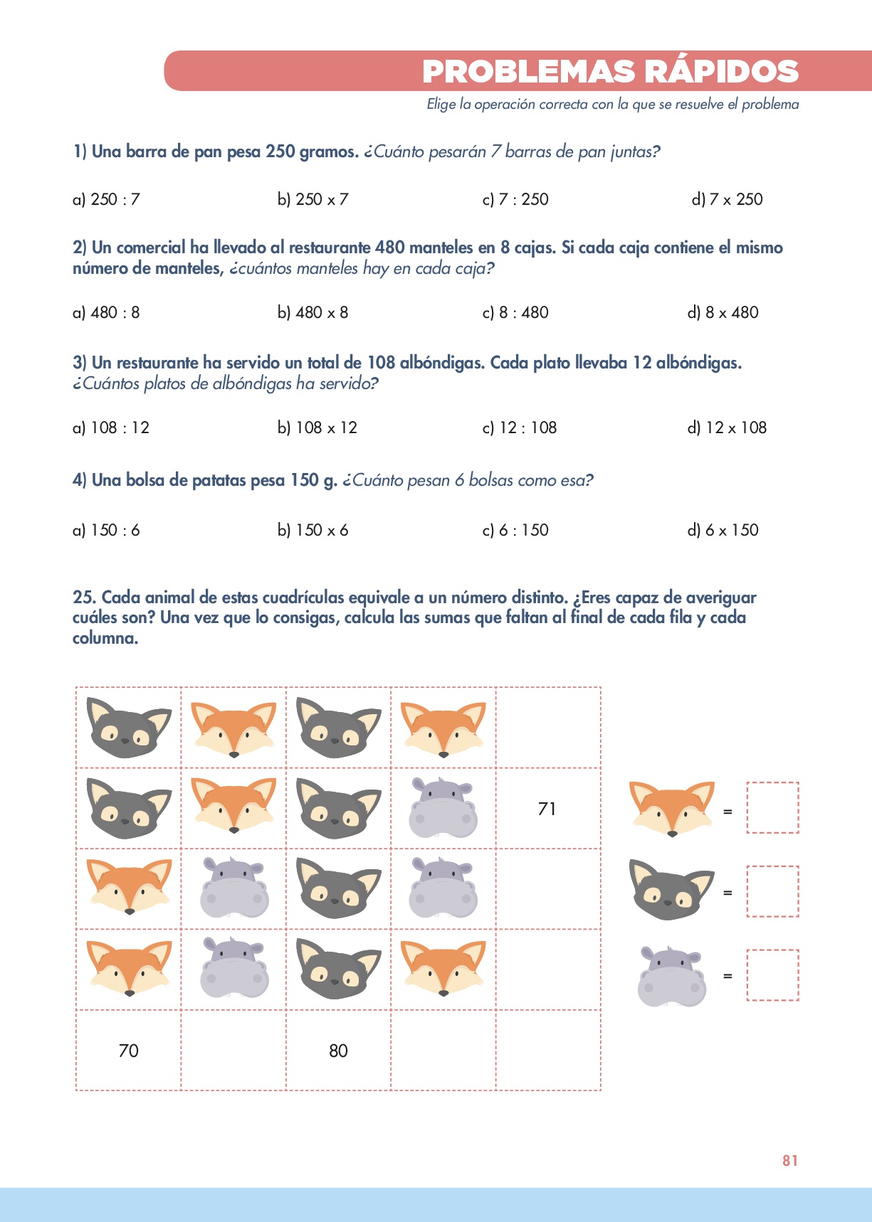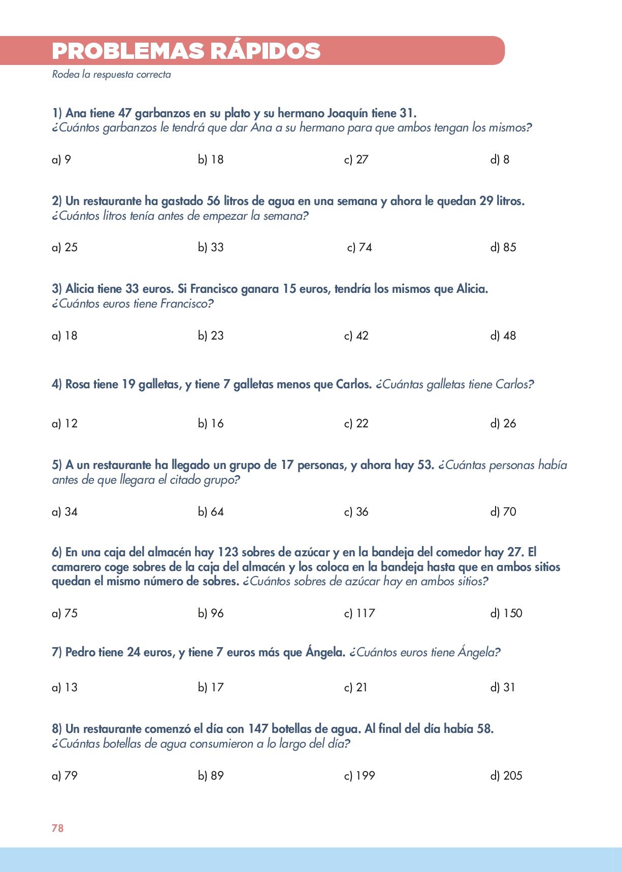 En esta página encontramos una batería de problemas rápidos en los que tendrán que seleccionar la operación con la que se resuelve y para terminar resolver un ejercicio de lógica.