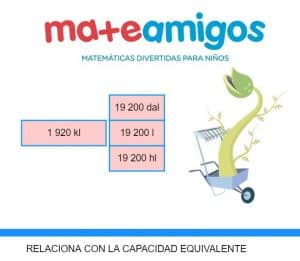 Comenzamos ahora a trabajar la capacidad con un ejercicio de pasar a una determinada unidad distintas capacidades para luego ordenarlas.