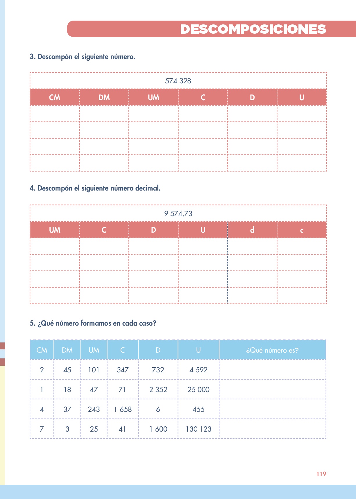 En esta página vamos a repasar las descomposiciones primero de un número natural y luego uno decimal. Para terminar un ejercicio en el que tienen que formar un número partiendo de una descomposición dada.