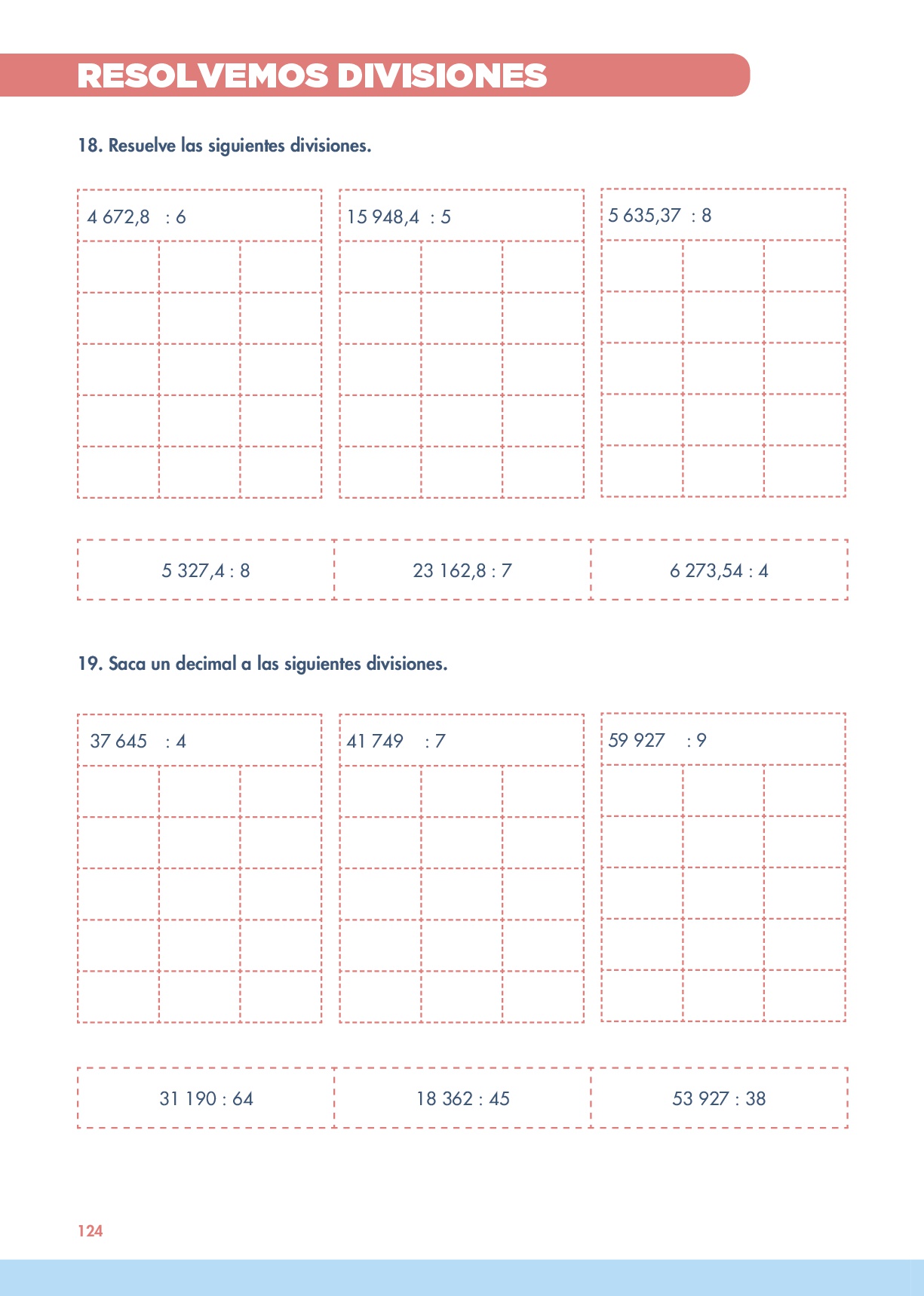 Resolvemos divisiones con decimales en el dividendo. También nos encontramos divisiones en las que tienen que sacar decimales y otras que son entre dos cifras.