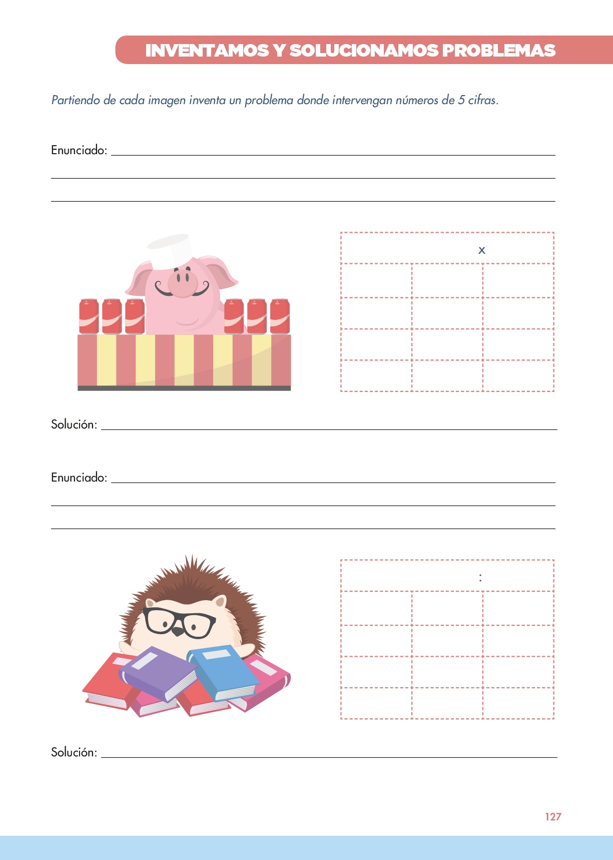 Trabamos los problemas de manera que tienen que inventarse uno en la que la operación sea una multiplicación y otro de división.