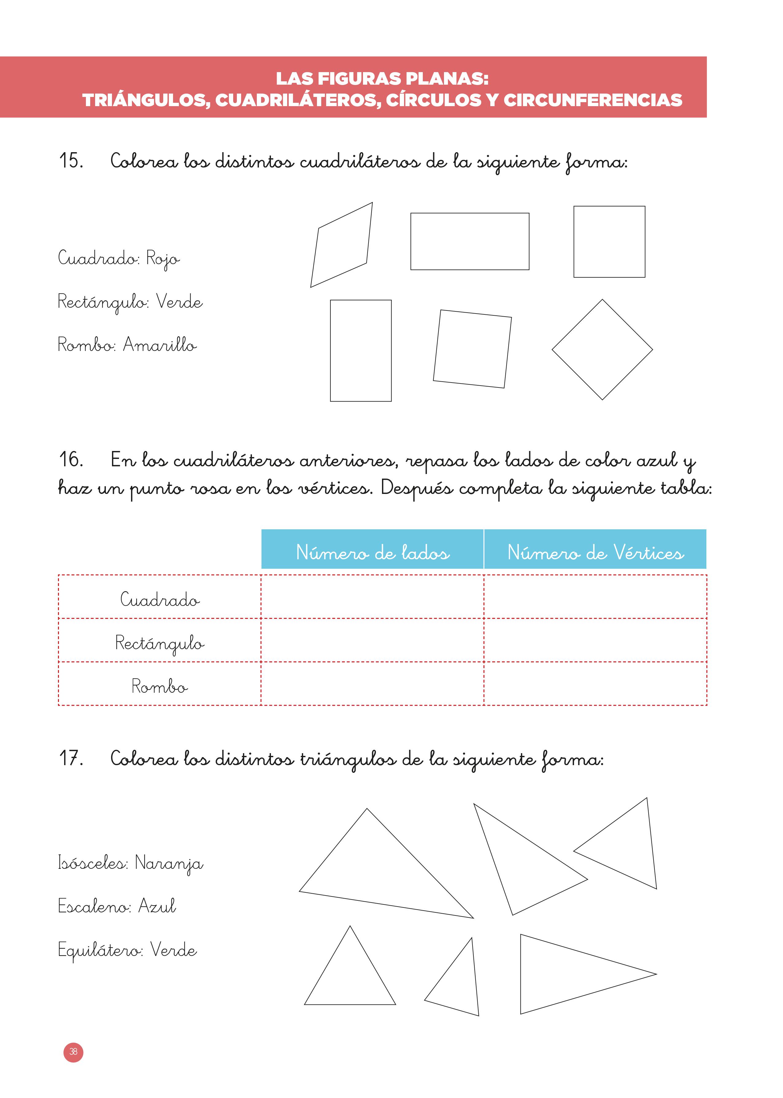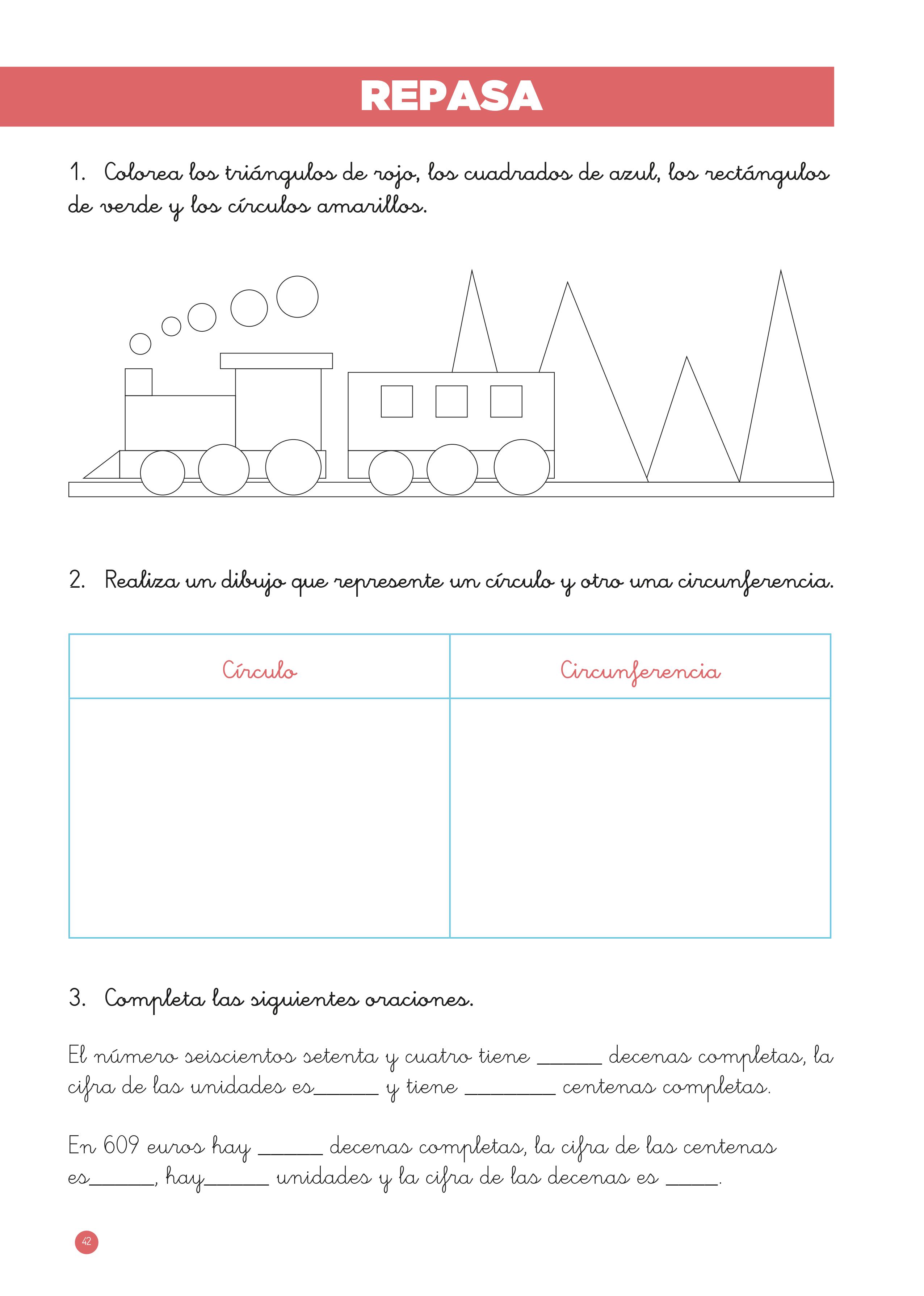 En el segundo ejercicio se pretende que el alumno diferencie entre círculo y circunferencia.