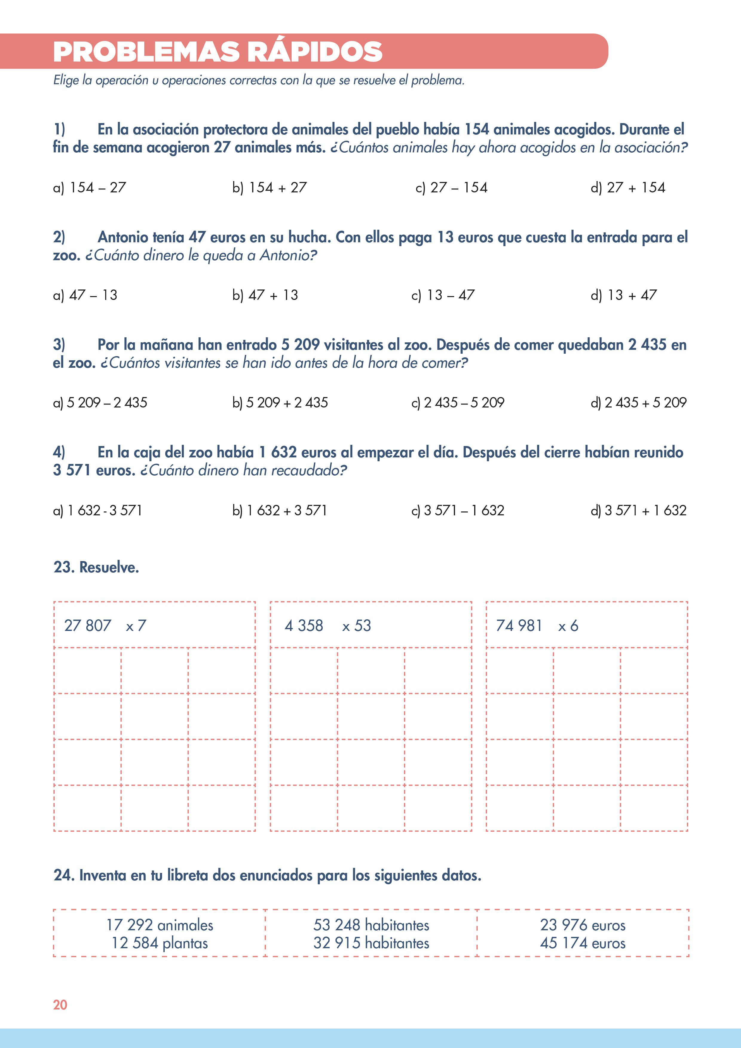 El cuaderno de ejercicios de Cuarto de Primaria está realizado siguiendo Algoritmos Abiertos Basados en la Descomposición Numérica. Esta metodología permite adaptar el nivel y ritmo de enseñanza a la madurez de cada alumno. Al adquirir el cuaderno, podrás acceder a nuestra Intranet para padres y docentes, donde encontrarás infinidad de contenido adicional: explicaciones del autor, presentaciones virtuales, juegos interactivos, videos, actividades complementarias…