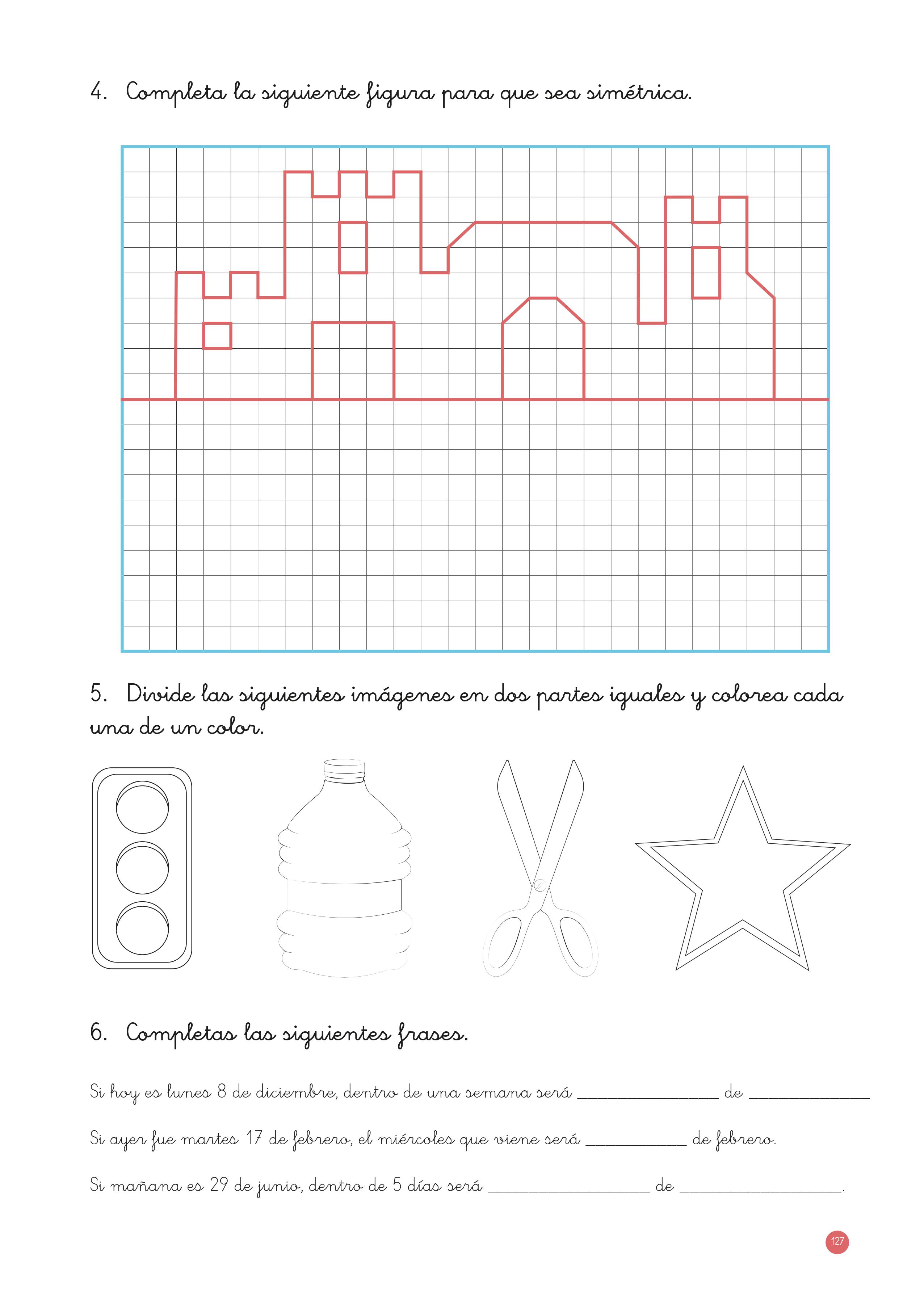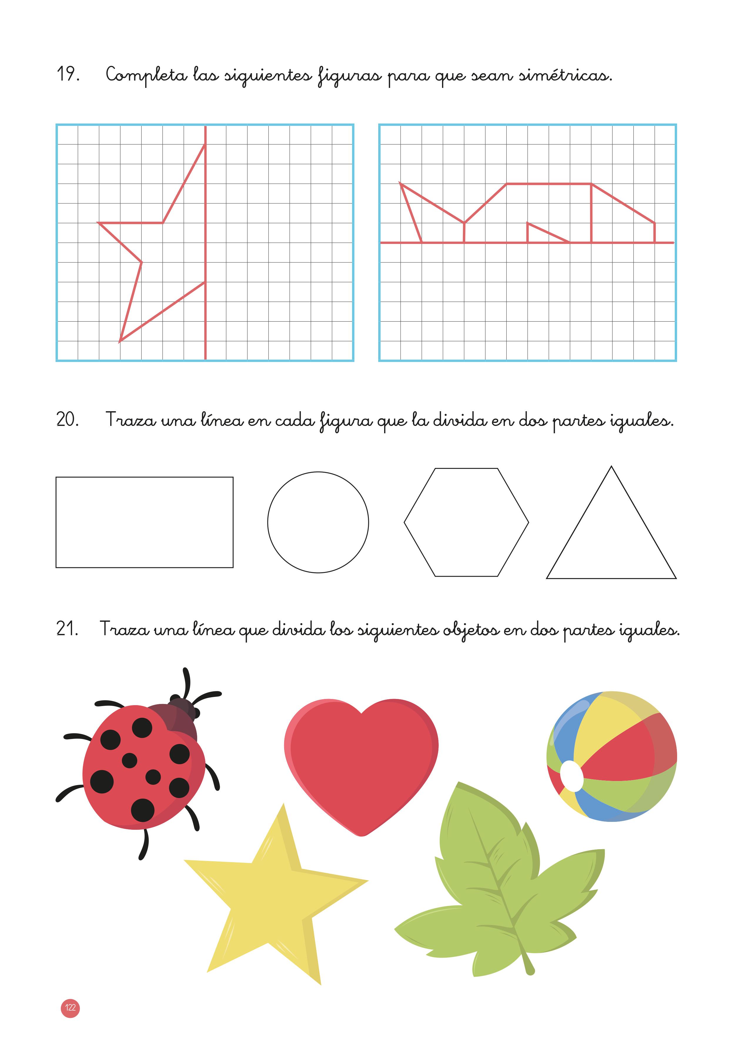 En el primero de ellos el alumno tiene que completar el dibujo de manera simétrica. Para ello tendrá que ayudarse de los cuadros.