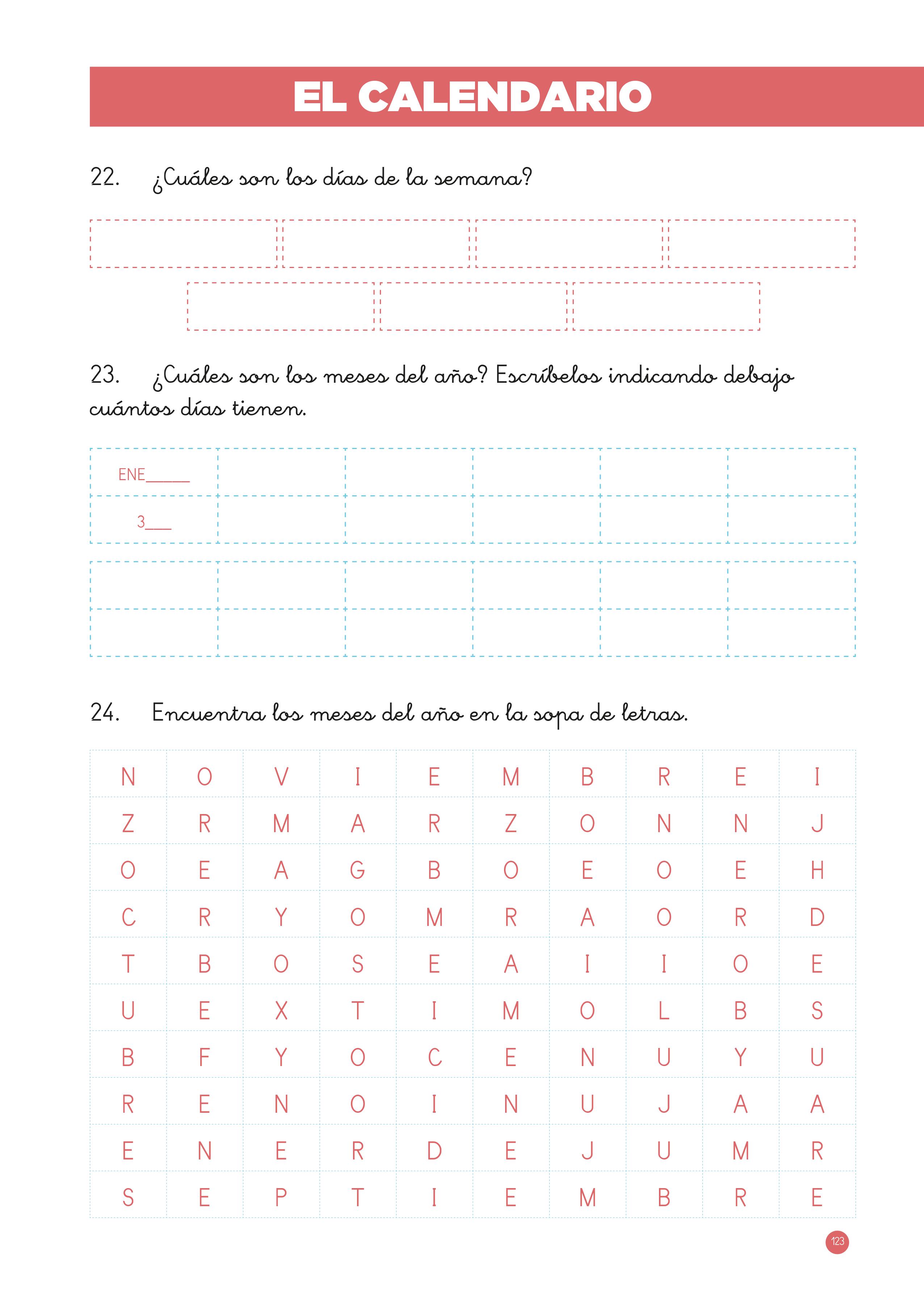 En el segundo ejercicio el alumno tiene que poner los meses del año e indicar cuántos días tiene cada uno. Se recomienda que los pongan en orden.