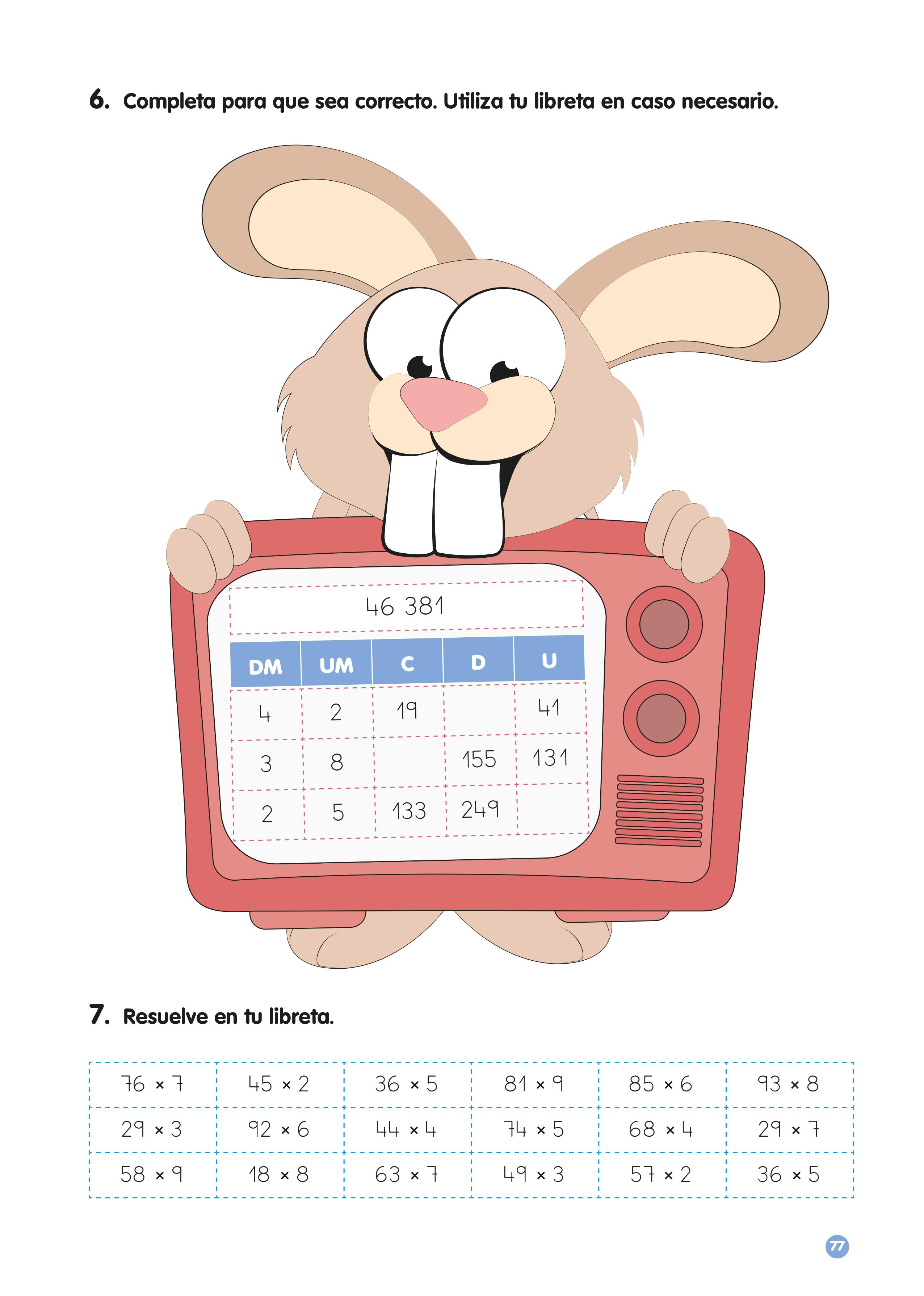 Para terminar tenemos un ejercicio de multiplicación en el que los alumnos tendrán que resolver mentalmente productos de un número de dos cifras por uno de una.