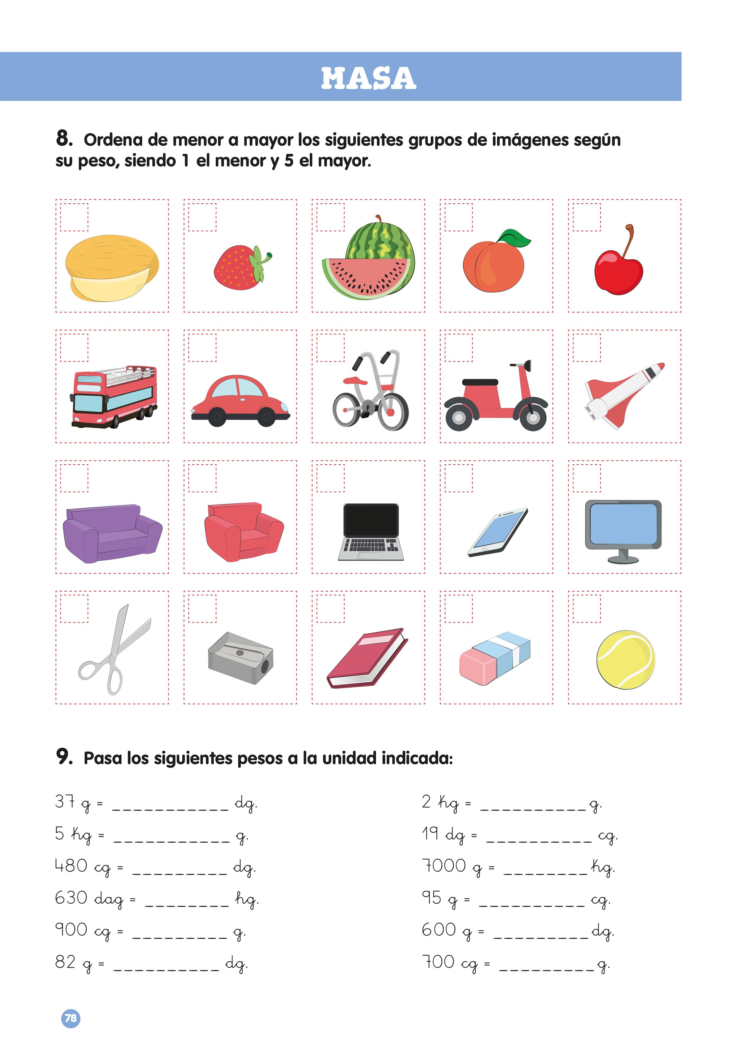 Por último los alumnos tendrán que dibujar las pesas necesarias para formar un peso dado.