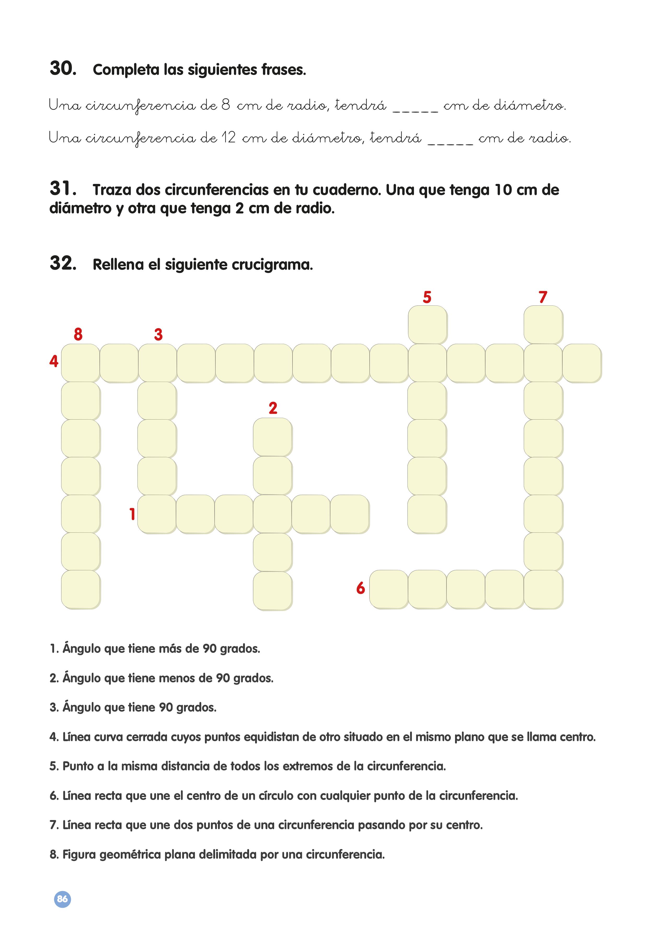 Por último un ejercicio de completar huecos donde aparece señalado el centro, la circunferencia y el círculo.